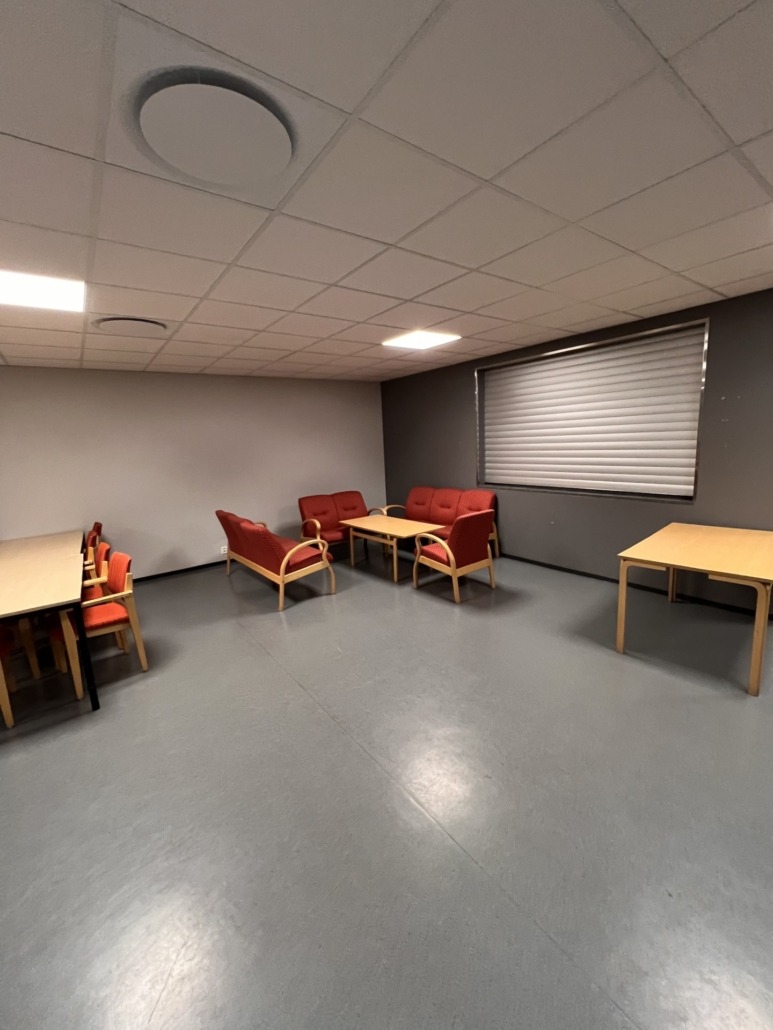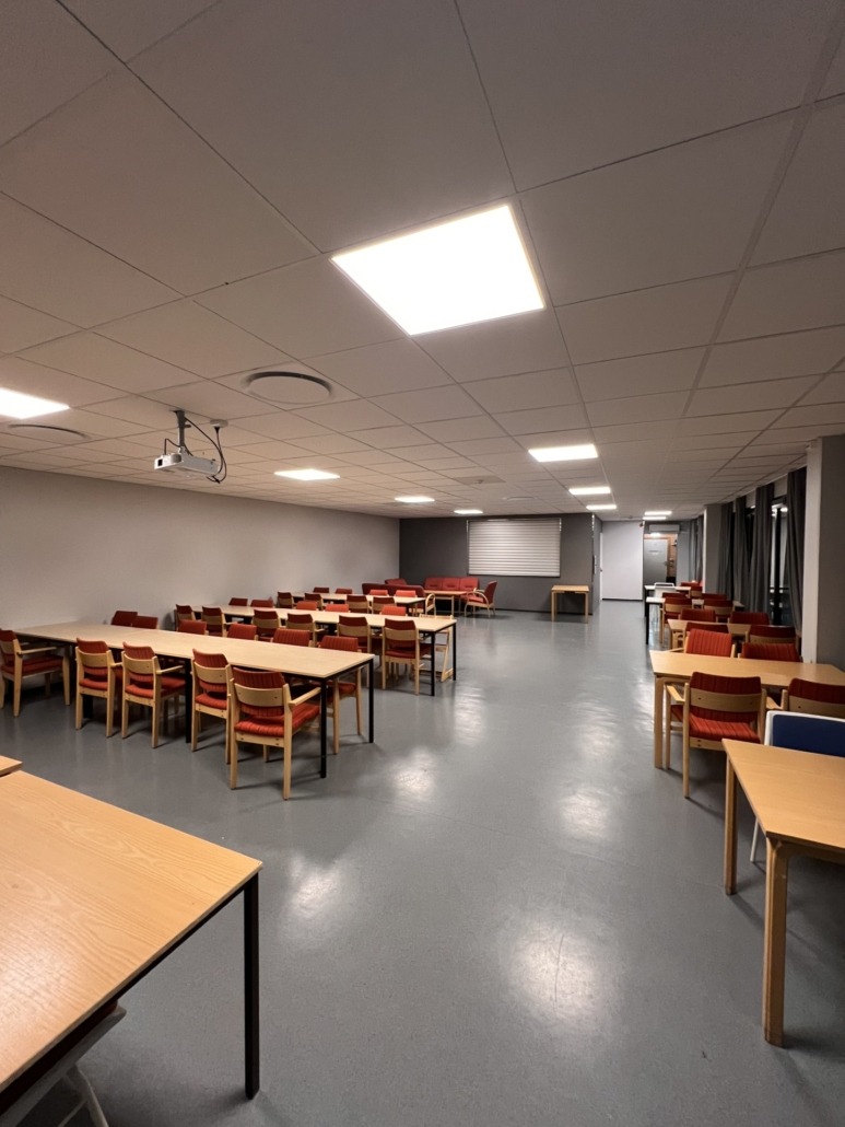 Kaféen er et praktisk og hyggelig lokale med fleksible løsninger – perfekt for både private og profesjonelle arrangementer.